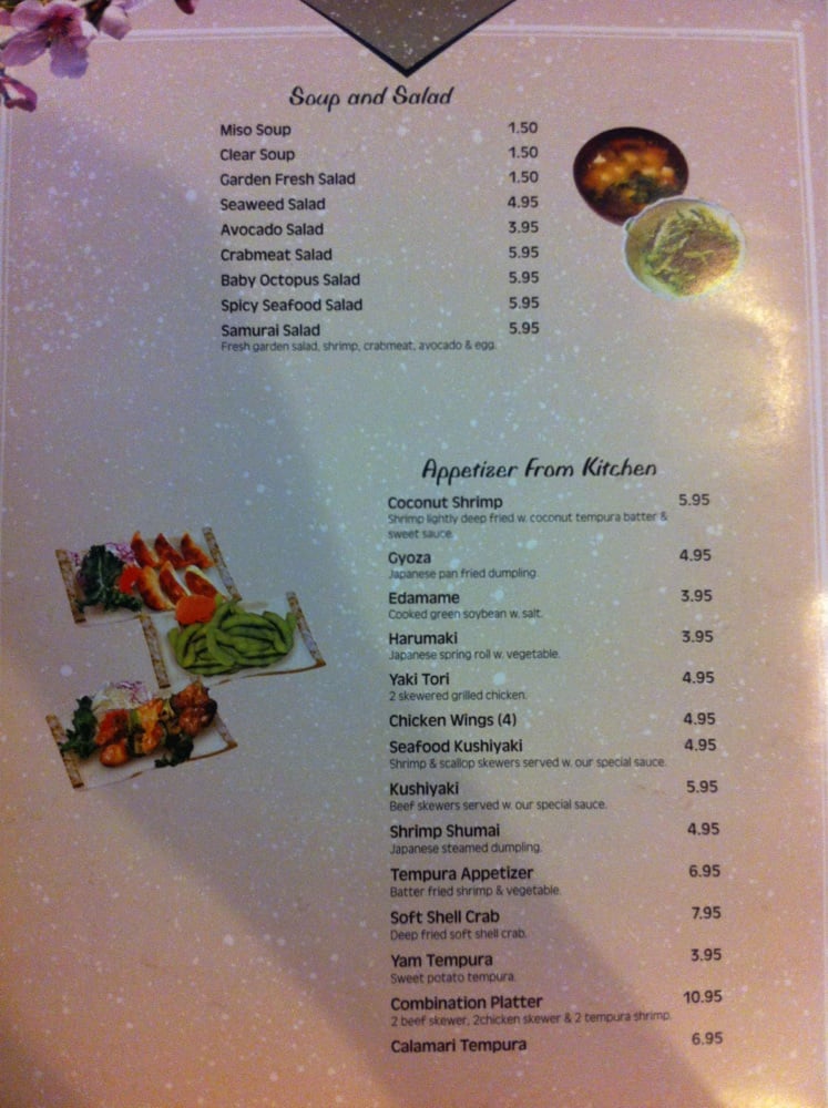 Samurai Japanese Steak House is a Japanese sushi bar located in Sandusky, OH. This casual eatery offers a wide range of sushi and Japanese cuisine, perfect for groups, kids, or a cozy dinner. The menu includes delicious soup and salad options like Samurai Salad and Tempura Crabmeat Salad. Appetizers like Calamari Tempura, Coconut Shrimp, and Combination Platter are great for starting your meal. Don't miss out on the sushi appetizers such as Salmon Tartar and Tuna Takaki. The atmosphere is casual with moderate noise, making it a great spot for a relaxing dining experience. With options for delivery, takeout, and catering, Samurai Japanese Steak House is a versatile choice for any occasion. My personal experience at Samurai Japanese Steak House was fantastic, with each dish exceeding my expectations in terms of flavor and presentation.